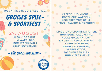 Ein buntes, vielfältiges Spielfest für Groß und Klein findet am Sonntag, den 27. August 2023 von 11.00 bis 16.00 Uhr im Wapelbad statt.